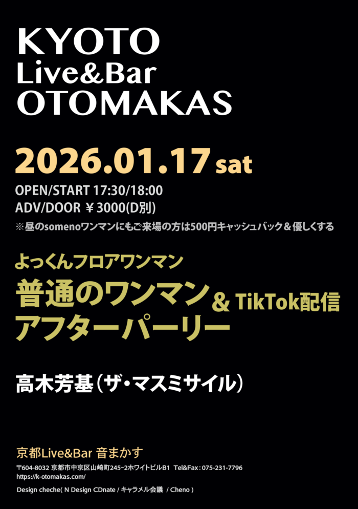 【1月17日(土)京都somenoライブ情報】